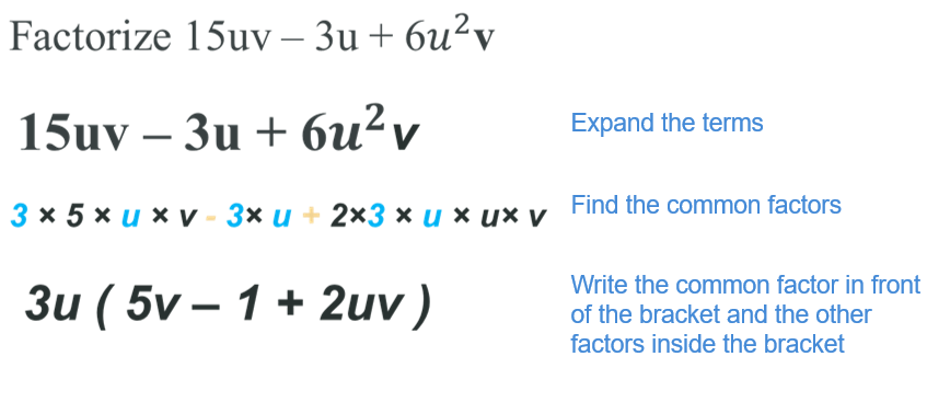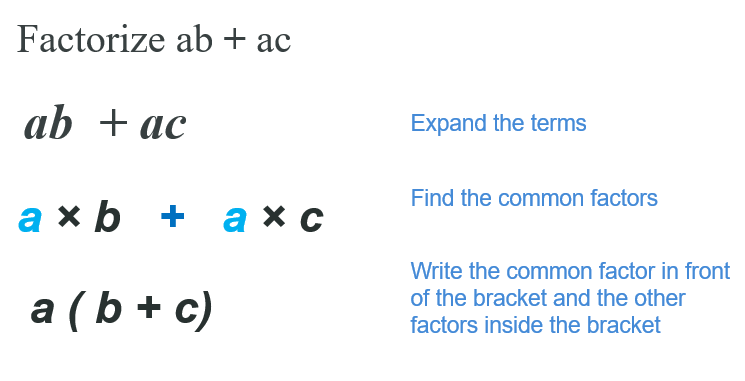 When the terms of an expression have a common factor, you can simplify the expression by factorization. This is the reverse of multiplication.